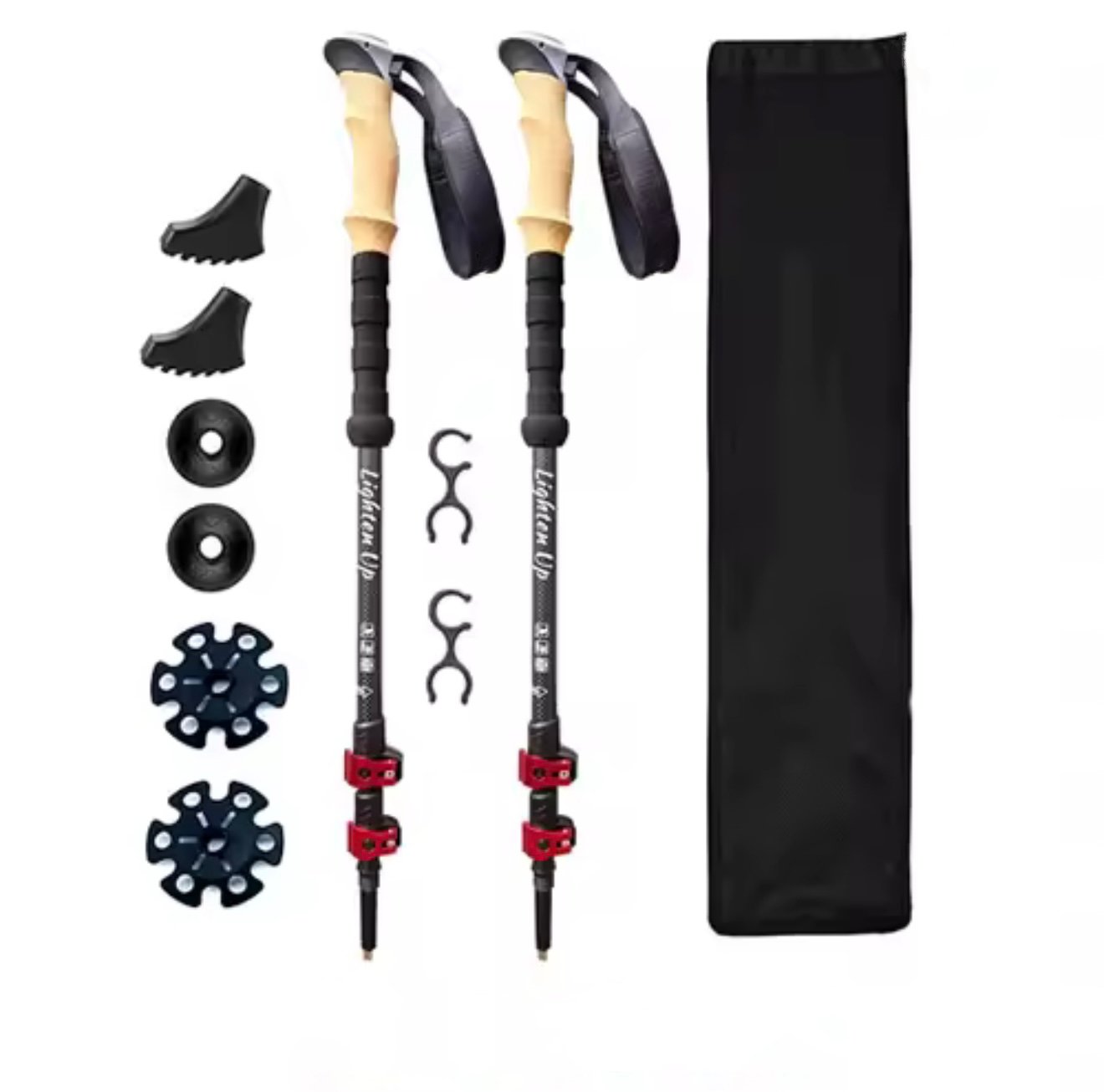 Beide Modelle verfügen über einen ergonomischen Naturkorkgriff, stoßdämpfende Eigenschaften und eine verstellbare Länge.